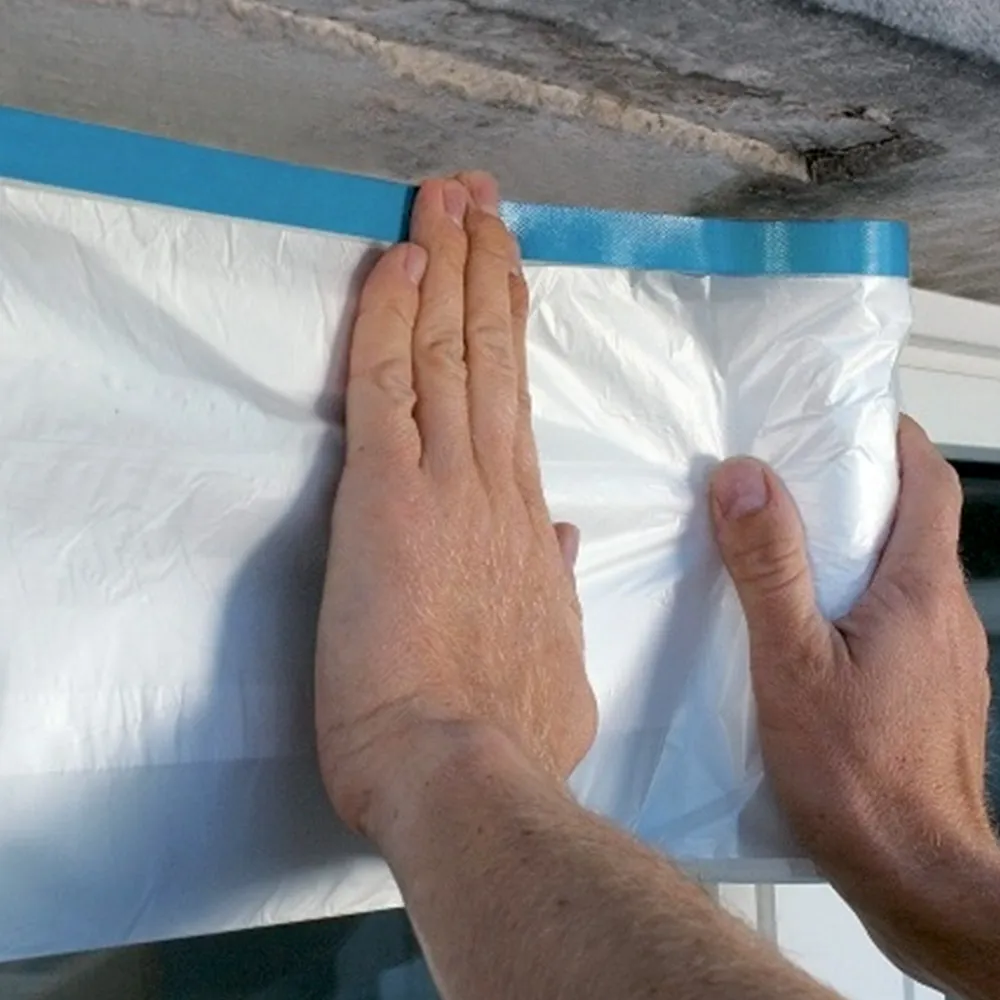 Folia malarska ANTYCHLAP z taśmą niebieską jest lepsza od zwykłych folii malarskich.