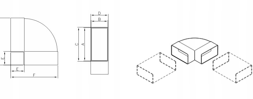 - Kolano poziome służące do budowy systemu wentylacji nawiewno-wywiewnej.