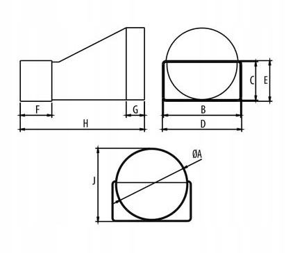 - Łącznik przekrojów zmiennych, który służy do budowy systemu wentylacji nawiewno-wywiewnej.