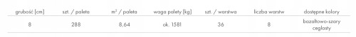 Cena dotyczy 1 mkw. odbioru osobistego pełnej palety (8,64 m2) z magazynu Producenta.