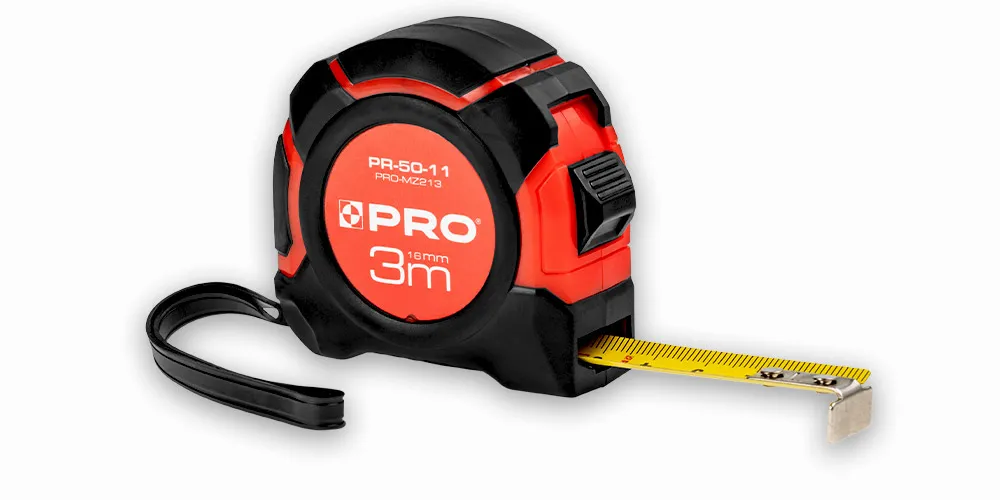 Miara zwijana z hamulcem 3m / 16 mm – kompaktowa i wytrzymałaPRO FACHMAYER Miara zwijana PRO 3 m to precyzyjne narzędzie do pomiarów budowlanych i warsztatowych. Podziałka w II klasie dokładności gwarantuje rzetelne pomiary. Kaseta ABS z gumowymi elementami TPR zapewnia pewny chwyt. Hamulec zaciskowy pozwala kontrolować wysuw taśmy. Miara posiada hak na 2 nity, amortyzator uderzeń, metalowy zaczep do paska oraz gumową tasiemkę na rękę. ▶ II klasa dokładności ▶ Gumowana obudowa ABS + TPR ▶ Hak na 2 nity ▶ Hamulec zaciskowy ▶ Tasiemka na rękę |