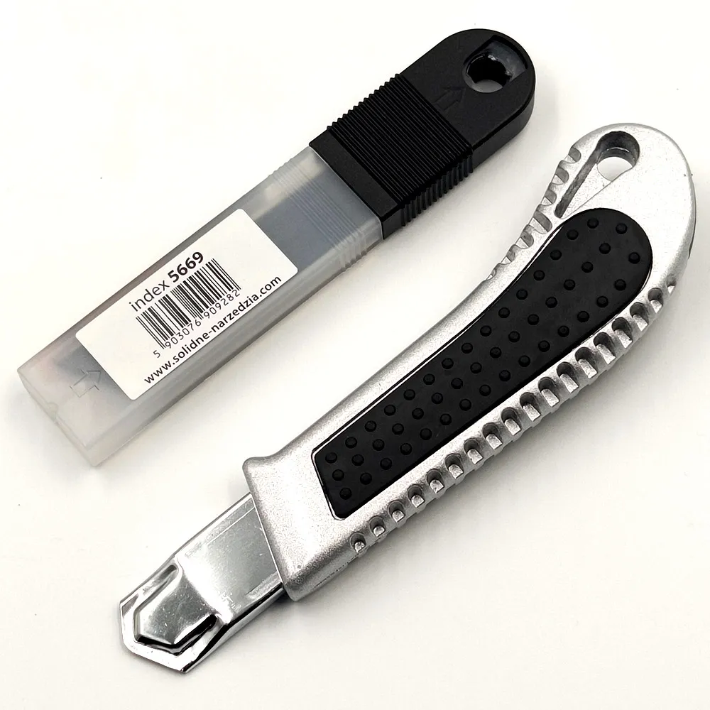 METALOWY NÓŻ + OSTRZA WYMIENNE SOLIDMetalowy nóż z wymiennymi ostrzami ze stali węglowej SOLID to niezastąpione narzędzie dla wszystkich, którzy cenią sobie funkcjonalność, trwałość i wydajność podczas różnorodnych prac. Wykonany z solidnego metalu, wyróżnia się ergonomicznym uchwytem, co gwarantuje komfort użytkowania nawet podczas długotrwałych zadań. Nóż jest wyposażony w wymienne ostrza wykonane ze stali węglowej wysokogatunkowej, charakteryzujące się niezwykłą ostrością przez bardzo długi czas. Dzięki nim, każde cięcie staje się precyzyjne i efektywne. Dodatkowo, do noża dołączono aż 10 ostrzy, co sprawia, że narzędzie to jest gotowe do intensywnego użytkowania przez długi czas. ⚫ Producent: SOLID ⚫ Szerokość ostrza: 18mm ⚫ Materiał: stal nierdzewna ⚫ Ergonomiczny, metalowy uchwyt ⚫ 10x ostrze wymienne ze stali węglowej ✅ Polski produkt, polska jakość. |