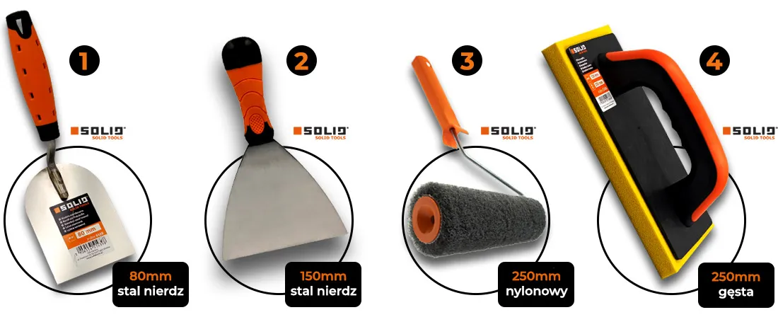 Jakość polskiego producenta narzędzi - SOLIDSOLID to po prostu solidna, polska firma produkująca narzędzia budowlane. Swoją działalność rozpoczęli w 2001 roku i rozwijają ją skrupulatnie do dzisiaj. Firma dysponuje dużym parkiem maszyn, wyposażonym w nowoczesny maszyny produkcyjne, który jest ulokowany w Gdańsku. Narzędzia wchodzące w skład zestawu zostały starannie przetestowane przez doświadczonych podwykonawców, co potwierdza ich wysoką jakość i funkcjonalność. Zestaw SOLID umożliwia nie tylko profesjonalnym rzemieślnikom, ale także amatorom, osiągnięcie perfekcyjnych efektów podczas prac związanych z gładzeniem powierzchni. Dzięki niemu możliwe jest szybkie i bezproblemowe położenie gładzi, eliminując ryzyko powstawania rys i niedoskonałości. |