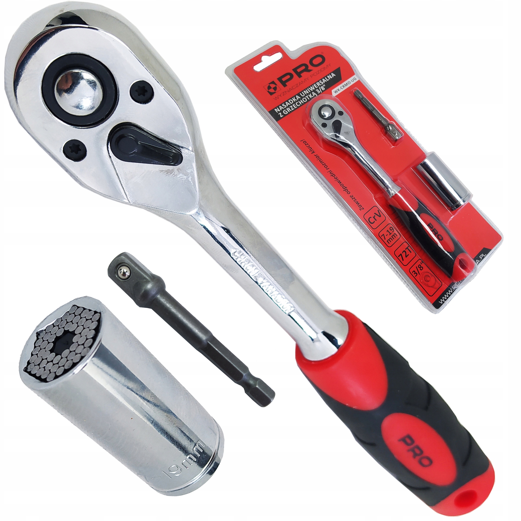 PRO Nasadka uniwersalna 7-19mm + grzechotka 3/8''