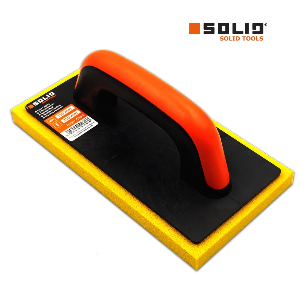 Paca do gładzi gąbkowa SOLID żółta – duża gęstośćProfesjonalna paca do zacierania gładzi, wykonana z gąbki o dużej gęstości. Idealna do precyzyjnego wygładzania powierzchni oraz pracy z masami szpachlowymi, gdzie wymagana jest większa kontrola i dokładność. Dzięki zwartej strukturze gąbki powierzchnia jest wygładzana równomiernie, co pozwala uzyskać bardzo gładki efekt końcowy, bez smug i nierówności. ✅Wymiary robocze: 250 × 130 mm ✅Materiał: Gąbka – duża gęstość ✅Uchwyt: Ergonomiczny, pokryty gumą ✅Przeznaczenie: Dokładne wygładzanie i finalna obróbka gładzi |