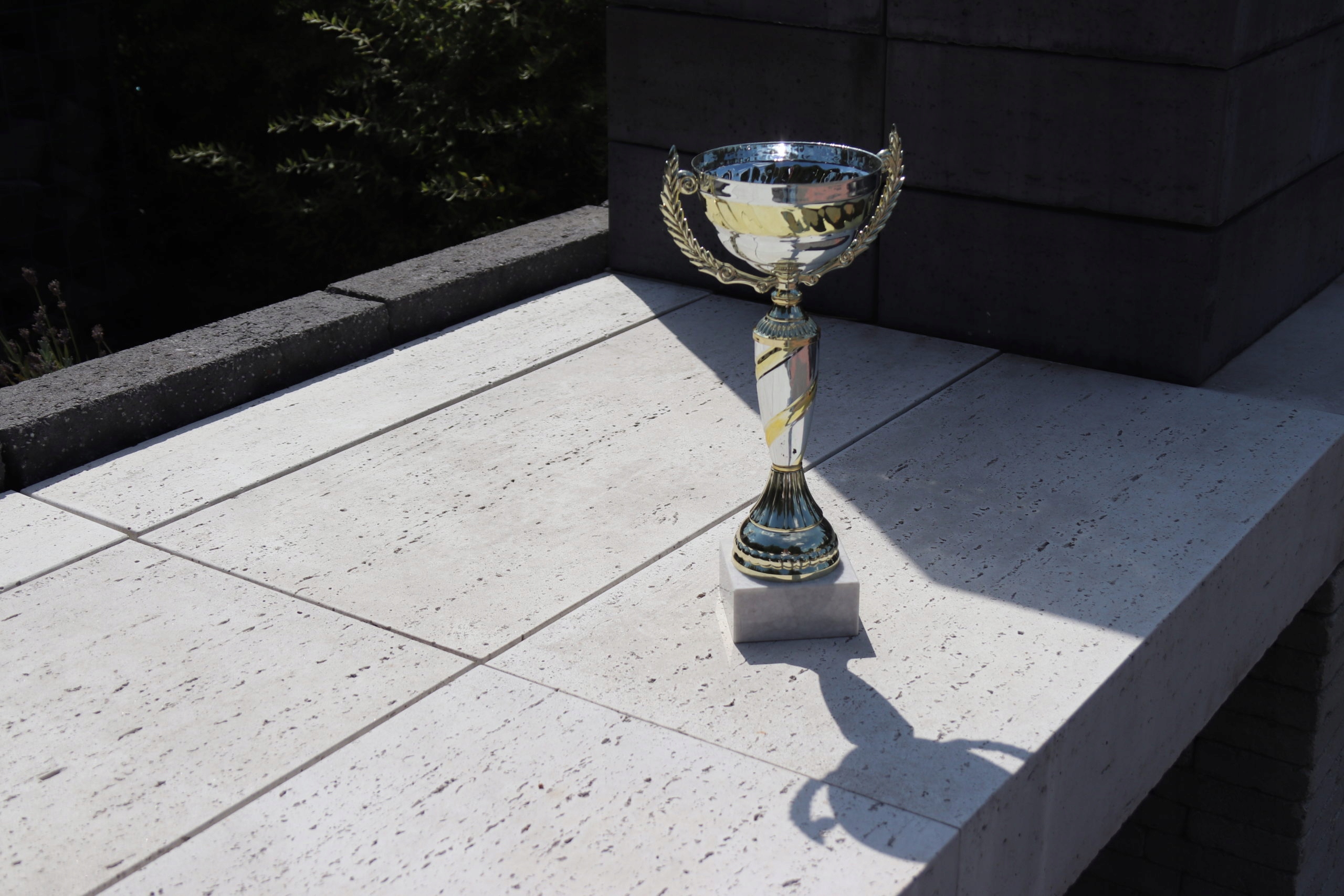 Trawertyn to prosty sposób na podkreślenie pięknego otoczenia. Dostępne są również inne elementy utrzymane w tej samej stylistyce: płyta ogrodowa w kształcie koła, palisada ogrodowa oraz płyta tarasowa. Razem stworzą spójną, klimatyczną aranżację.