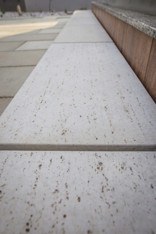 Stopień Trawertyn przenosi na powierzchnię schodów, murków i elementów małej architektury oryginalny, chropowaty rysunek, charakterystyczny dla faktury naturalnego kamienia. Stopnie tarasowe dostępne są w modnych odcieniach szarości, które z powodzeniem wpasują się w różnorodną stylistykę ogrodu i domu.