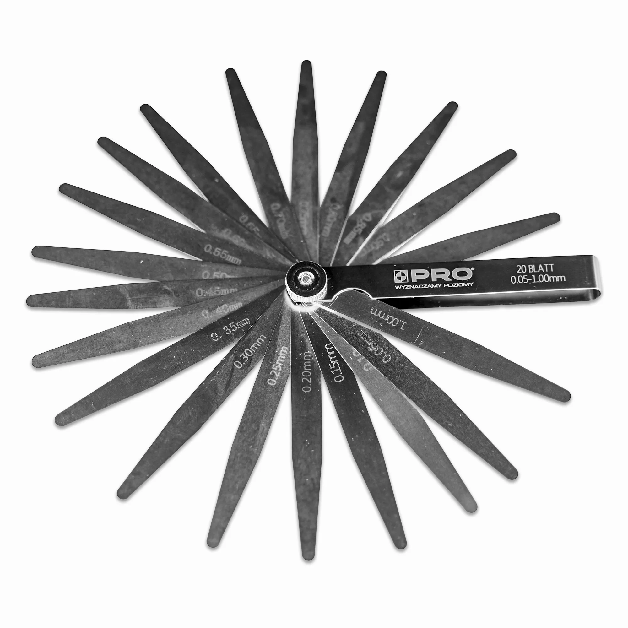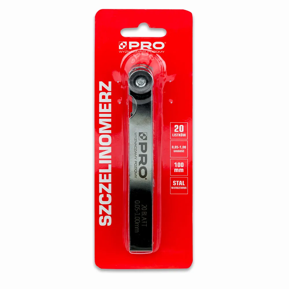 Stal nierdzewna i polerowana powierzchniaWysokiej jakości stal nierdzewna zapewnia odporność na korozję i długą żywotność narzędzia, nawet w wymagających warunkach warsztatowych. Polerowana powierzchnia listków zwiększa ich trwałość, poprawia poślizg w szczelinach oraz sprawia, że narzędzie zachowuje swoje właściwości pomiarowe przez długi czas. |