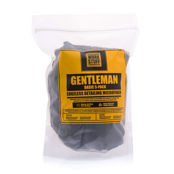 Mikrofibra do czyszczenia i pielęgnacji różnych elementów w samochodzie. Świetnie sprawdzi się podczas woskowania, nakładania powłok, stosowania Quick Detailer’ów oraz innych prac wewnątrz i z zewnątrz auta. Fibra posiada laserowo wycięty logotyp WORK STUFF. GENTLEMAN Basic charakteryzuje się płaskim materiałem z jednej strony oraz puszystym z drugiej. Dzięki temu z pomocą jednej mikrofibry można nakładać produkt, a następnie go docierać na wybranym elemencie. Występuje w czterech wariantach kolorystycznych: fioletowy, biały, żółty, szary.