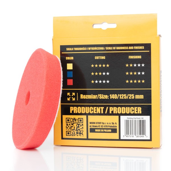 WORK STUFF MIĘKKI PAD POLERSKI FINISHING 125/140mm CZERWONY