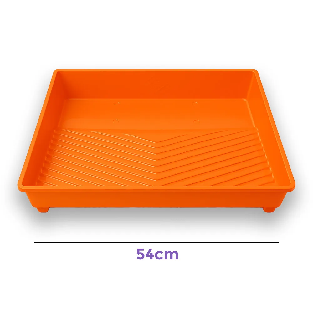Kuweta malarska 38×54 cm – komfort i wydajność pracyDołączona kuweta 38×54 cm została zaprojektowana z myślą o szerokich wałkach i malowaniu dużych powierzchni. Jej głębokie dno i wzmocnione ranty zapewniają większą objętość farby, co przekłada się na rzadsze dolewanie i szybszą pracę. Wygładzone ociekacze umożliwiają równomierne ściągnięcie nadmiaru farby z wałka, a sztywne, wytrzymałe stopki zapewniają stabilność kuwety nawet na nierównej podłodze. Kuweta jest wykonana z odpornego tworzywa sztucznego — nadaje się do farb wodnych, lakierów oraz żywic.