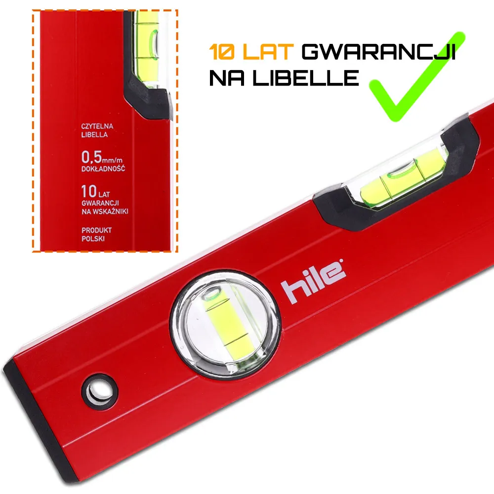 Precyzja pomiaru z PRO HILEGłówną cechą wyróżniającą Poziomice PRO Hile jest ich innowacyjny design, w którym szczególną uwagę zwrócono na kształt libelli. Dzięki obłemu kształtowi libelli, odczyt położenia pęcherzyka jest niezwykle prosty, bez względu na kąt patrzenia. Eliminuje to problem załamania obrazu na krawędzi libelli, co sprawia, że pomiary są szybkie i precyzyjne. Zestaw Poziomic PRO Hile to nie tylko narzędzia, to również gwarancja wydajności i profesjonalizmu w pracy. Dzięki różnym długościom poziomic w zestawie, masz elastyczność w wyborze narzędzia do konkretnego zadania. To zestaw, który sprawdzi się zarówno w pracach budowlanych, remontowych, jak i przy projektach DIY. Dzięki niemu Twoje pomiary będą szybkie, precyzyjne i estetyczne, a efekty końcowe - doskonałe. |